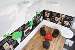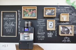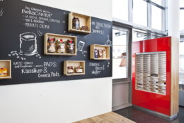 Die Empfangshalle, die Kantine und die Flure von Melitta Bremen wurden neu konzipiert, so dass ein informierender und einladender Charakter der Räumlichkeiten sowohl für Kunden als auch für Kooperations- und Geschäftspartner geschaffen wurde. Die Empfangshalle wurde inhaltlich und strukturell in 3 Bereiche gegliedert: Empfang, Kaffee-Wissen und Kaffee-Lounge. Punktuelle visuelle Reize sorgen für mehr Orientierung. Zusammenarbeit mit dem Architekten Hendrik Weiner