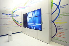 Unter dem Dachnamen »Wissenswelten« versammelten sich unterschiedliche Museen, Science Center und Ausstellungshäuser aus Bremen und Bremerhaven. Sie präsentierten sich auf der ITB mit einer interaktiven Installation. Die »Wissenswolke«, als Bild für die Vielzahl der Wissenswelten, gewährte Einblicke in die verschiedenen Häuser. Die Besucher*innen konnten interaktiv mit der »Wissenswolke« in Kontakt treten und sich so mit Fragen aus den Themenbereichen der Ausstellungshäuser auseinandersetzen. Das Konzept, die Gestaltung und die Umsetzung wurde gemeinsam mit der Agentur whatif GbR erstellt.