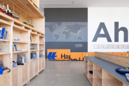 Das Foyer des Deutschen Schifffahrtsmuseums in Bremerhaven wurde gemeinsam mit der Agentur whatif GbR gestaltet und umgesetzt. Das Gesamtkonzept umfasst den Empfang, den Café-Bereich und den Museums-Shop. Für die Gestaltung haben wir prägnante Stilelemente aus Schifffahrt und Logistik herangezogen: Die Tresen wurden mit Blechen von Übersee-Containern verkleidet. Die Gestaltung der Schließfächer und der Garderobe ist an Transport-Kisten angelehnt. Durch überdimensionierte, aufeinander gestapelte Kisten wird die Halle in zwei Räume geteilt. Diese stellen gleichzeitig auch Mobiliar dar und beherbergen Produkte des Museum-Shops sowie Ausstellungs-Exponate. Abgerundet wird das Raum-Konzept durch eine raue und charmante, warme Holz-Ästhetik.